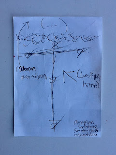 Map/diagram of unknown intent by Danielle McArthur, pen on coaster, 3.5 x 3.5 inches, 3/5/13.